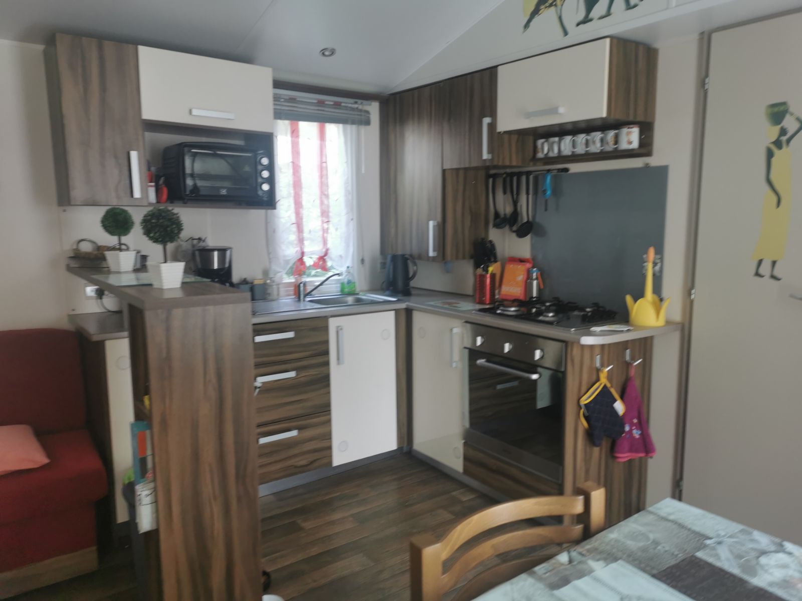 Le mobil home comprend 2 SDB, 2 WC, salon central avec télevision (chaines françaises),